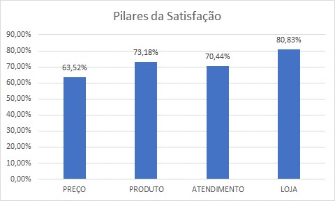 Quando analisados os principais pilares da satisfação no Centro-Oeste, foram encontrados destaque para o pilar Loja. O pilar com o menor nível de satisfação no período foi o Preço.