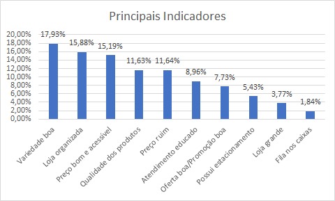 Lista dos principais indicadores encontrados com relação aos pilares de satisfação apresentados