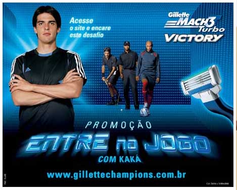 Promoção “Entre no Jogo com Kaká”, até 31 de dezembro de 2008, na Estação Mach3: Porto Alegre, Florianópolis, Rio de Janeiro, Juiz de Fora, Recife, Fortaleza, Salvador, Campo Grande, Distrito Federal e São Paulo (capital e interior). Inscrições: www.gillettechampions.com.br