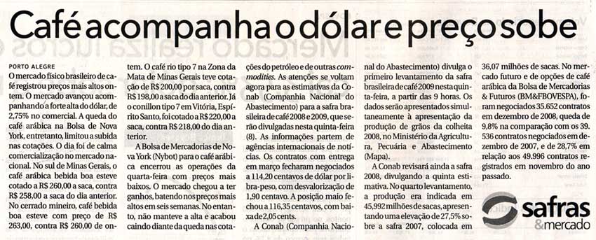08/01/2009 15:07 - Café acompanha o dólar e preço sobe