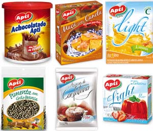 A linha de produtos Apti é composta por sobremesas, refrescos, condimentos, confeitos, achocolatados, shakes, chocolates, matinais, caldos, temperos, misturas prontas, ingredientes, produtos Light, comercializados nas marcas Apti, Yeba!, Piko e Pitucho. A empresa também atua no Food-Service. “Entre os itens, nosso destaque fica por conta da gelatina, refresco, mistura para bolo, achocolatado e o caldo em tabletes, recente lançamento”, conta Roberto, em entrevista ao Noticenter.